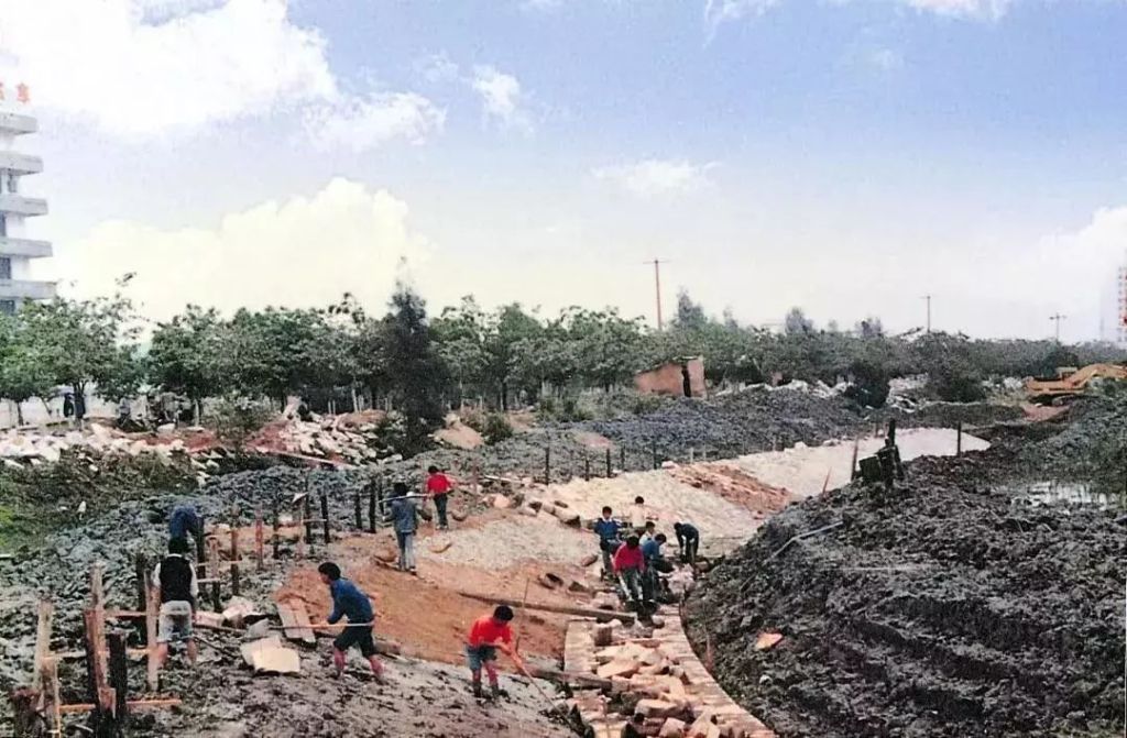 1988年,筼筜湖正在清淤筑岸。筼筜湖管理中心/圖